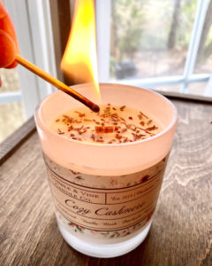 I chose to use organic soy wax so that no harmful toxins are released into the air when the candles are in use, making these candles eco-friendly! Wooden wicks create a perfect and relaxing ambiance and help deliver a fantastic scent throw, along with a mesmerizing crackling sound. Each candle is finished off with a unique sprinkle of dried flower petals & organic tea for a natural pop of color!